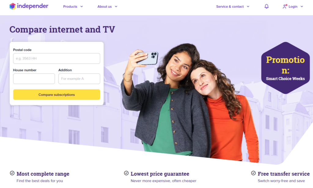 In the Netherlands, the best option is to be able to compare your subscription and switch to a better option. One of the leading platforms for the Independer, and you can just input your Postcode and House Number combination to receive up-to-date information about the latest and most excellent options.